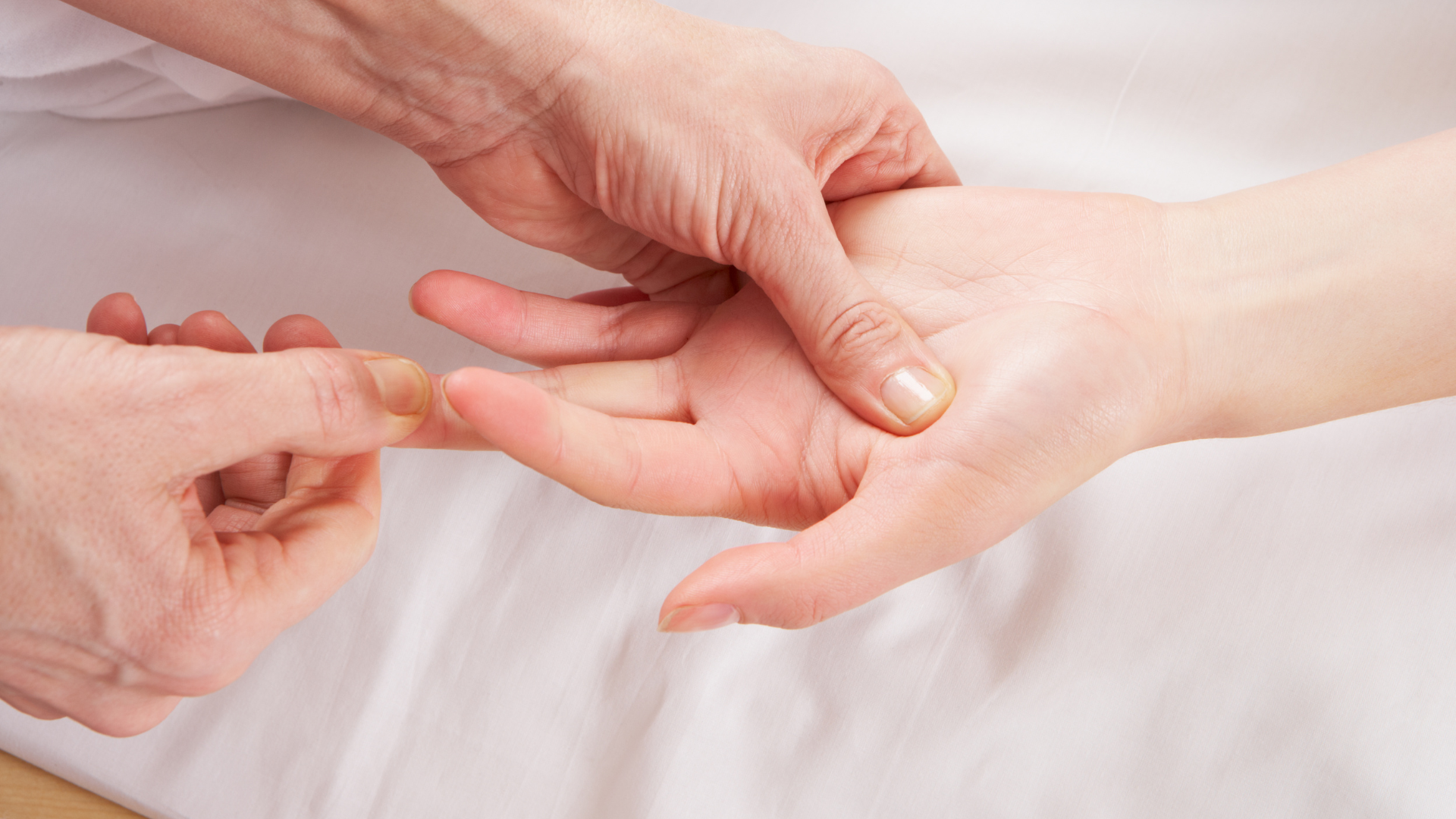 Alívio do estresse e da ansiedade: Assim como a versão nos pés, a massagem na palma e nos dedos promove um relaxamento profundo, acalmando o sistema nervoso.